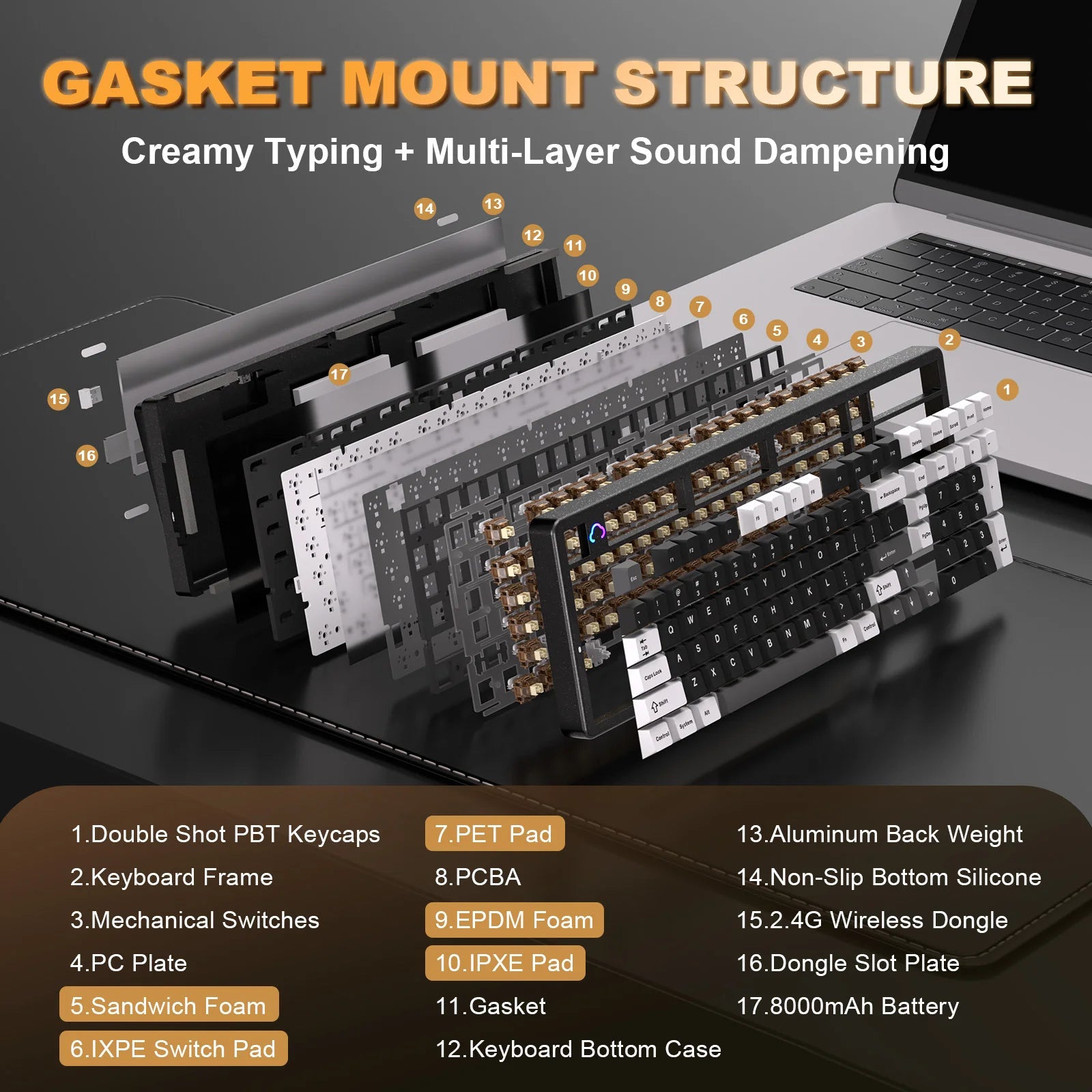 Hot-Swappable: Full-key hot-swappable, supports 3-pin or 5-pin mechanical keyboard switches.