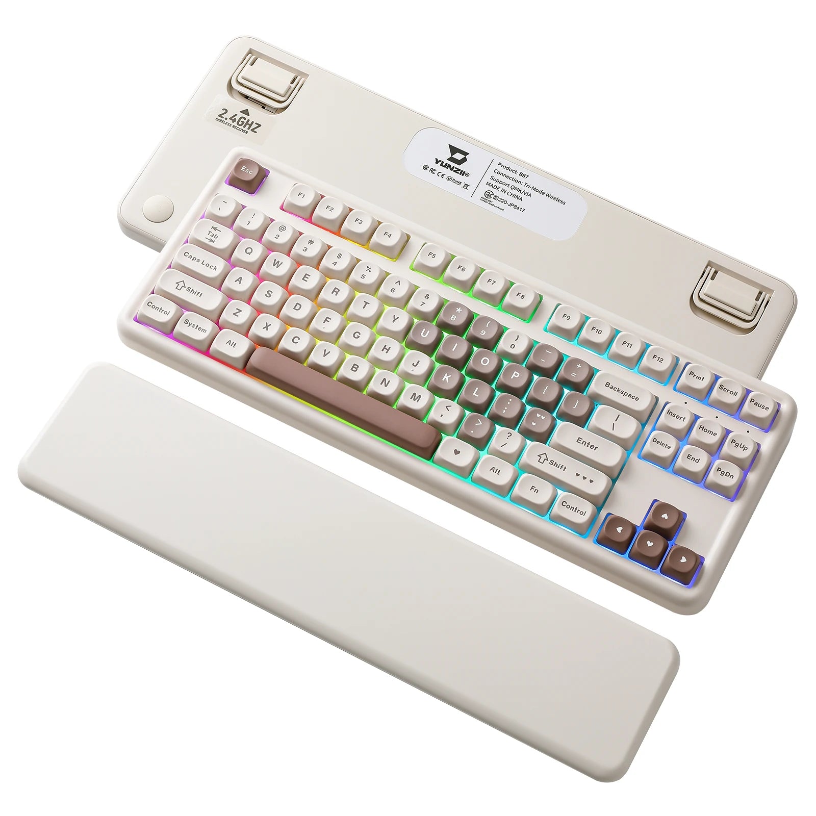 YUNZII B87 Heart Wireless Mechanical Keyboard, QMK/VIA Custom RGB Gaming Keyboard, Beauty Aesthetic Keeb, Wrist Rest for Win/Mac