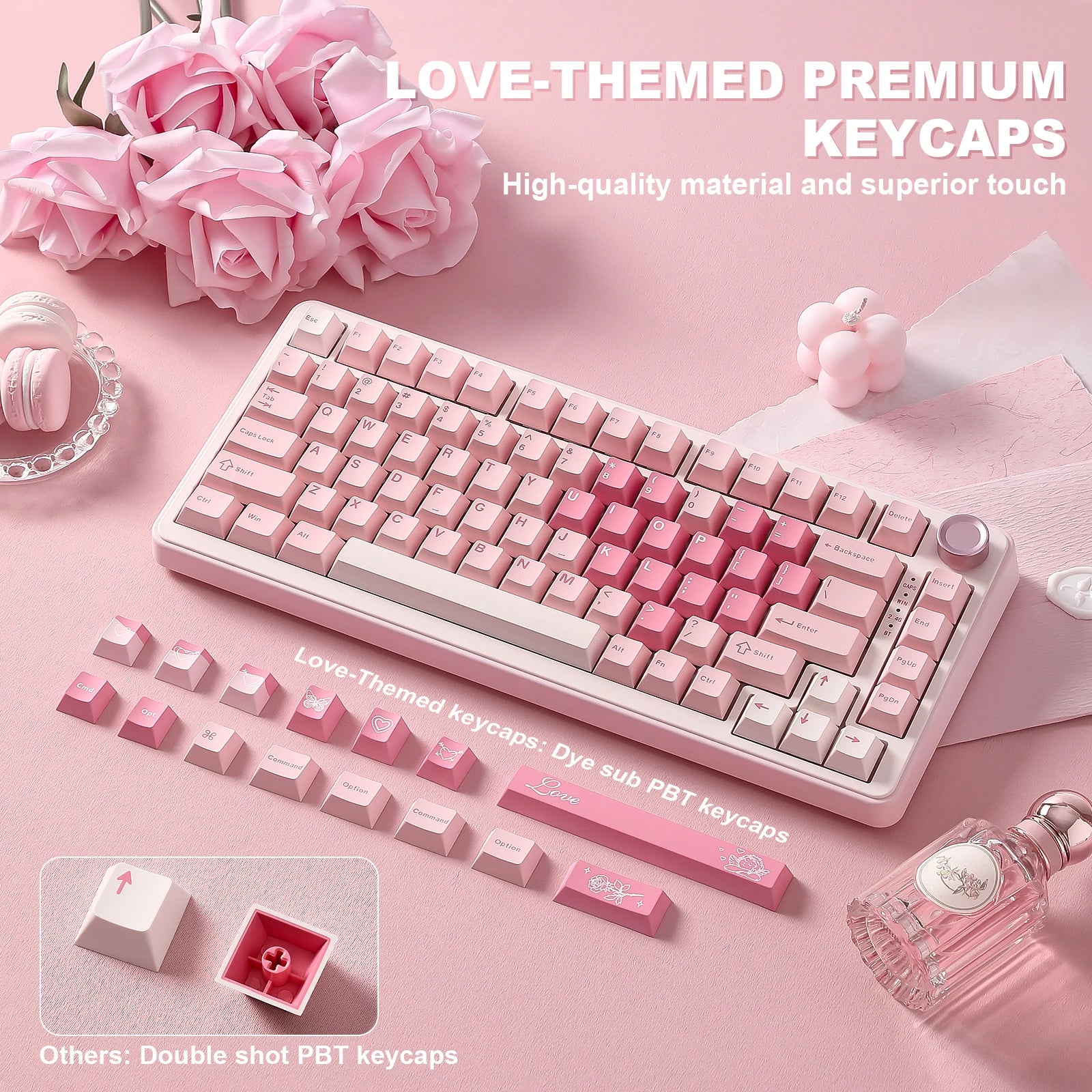 B75 PRO is a compact keyboard with a knob and 82 keycaps. The TKL keyboard has number keys, function keys, and arrow keys at the same time. The multi-function knob of the 75% gaming keyboard enables you to adjust the sound level and backlit fast. Long press the multifunctional knob of this RGB keyboard can switch between gaming and office modes, rotate the knob to adjust the keyboard volume and RGB backlit effects.